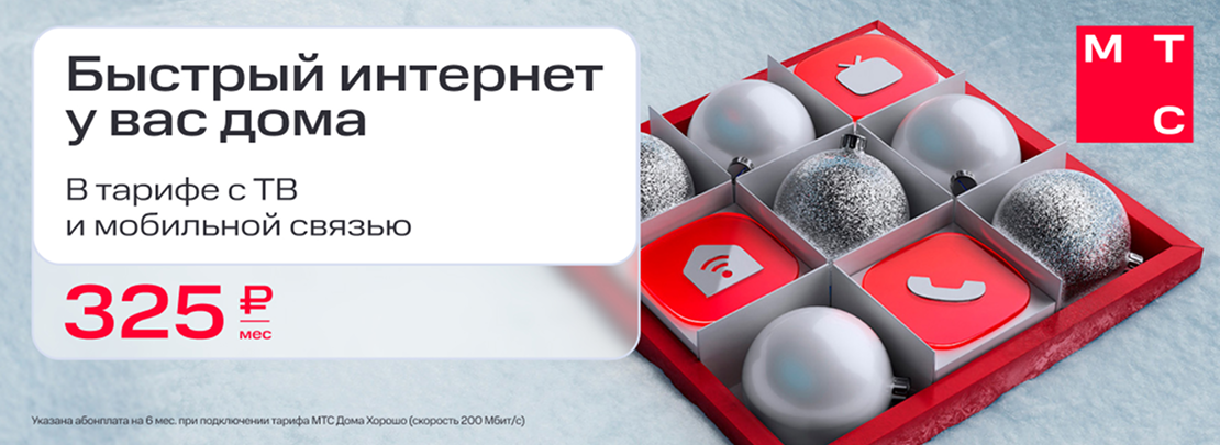 В акции участвуют тарифы МТС Дома Супер и МТС Дома Отлично. Любой из них можно подключить онлайн в праздничный период